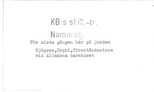 //// KB:s s! //// För sista gången här på jorden //// Sjögren,Sophi,föreståndarinna vid Allmänna barnhuset ////