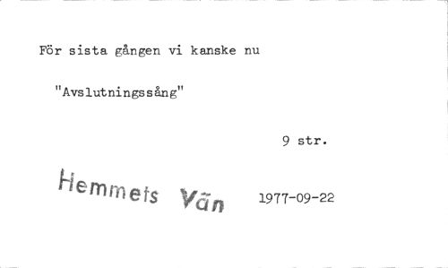 //// För sista gången vi kanske nu "Avslutningssång" //// 9 str. //// I-i e m ers Våt) 1977-09-22 ////