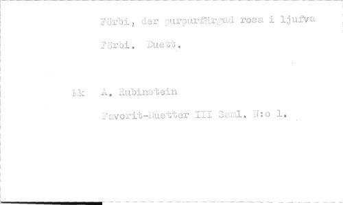 //// Förbi, der purpurfärgad rosa i ljufva örbi. Duett,. //// Lac A. Rubinstein //// 2avorit-Duetter III Sarl. nto 1. ////