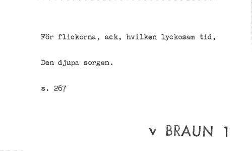 //// För flickorna, ack, hvilken lyckosam tid, //// Den djupa sorgen. //// s. 267 //// v BRAUN 1 ////