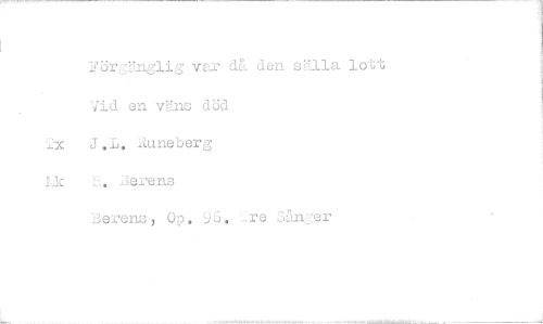 //// 2öräng1ig var då den sälla lott Vid en väns död //// 2x J.L. .äuneberg //// Lk L. Serens //// Berens, Op. 96. YJre SLIager ////