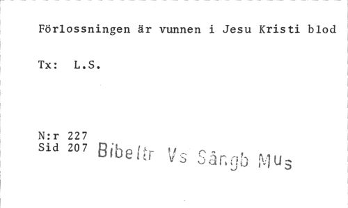 //// Förlossningen är vunnen i Jesu Kristi blod //// Tx: L.S. //// N:r 227 //// Sid 207 D'L //// DiUettr ////