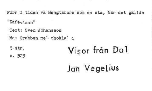 //// Förr i tiden va Bengtsfors som en sta, När det gällde //// Nafevisan" //// Text: Sven Johansson //// Ma: Grabben me' chokla' i //// 5 str. Visor från Dal //// 3.323 Jan Vegelius ////