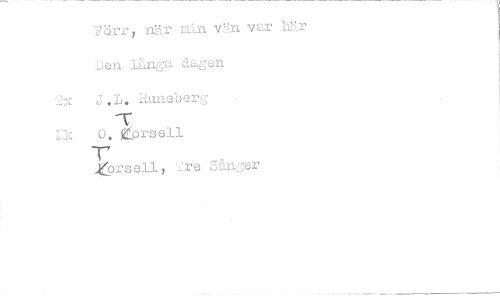 //// Förr, när min .C.In var //// Den långa dagen //// 12x J.L. Runeberg //// LJc o. eorsell //// -r //// Zorsell, tre Sängar //// fl ////