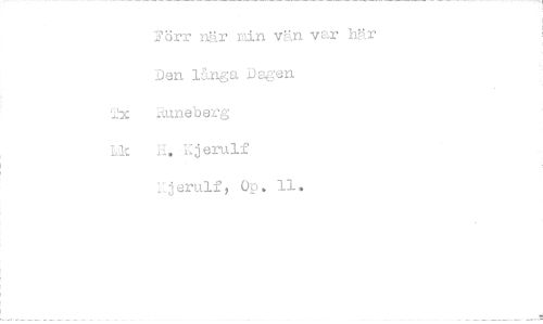 //// Förr när min vän var här Den långa Dagen //// Tx 1-tuneberg //// Lk H. .jerulf //// erulf, Op. 11. ////