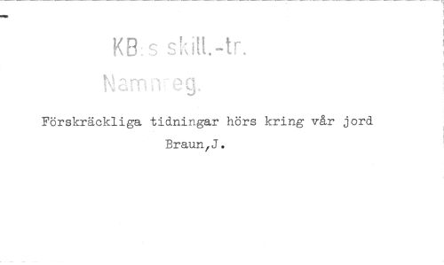 //// KB:s skilt -tr //// Förskräckliga tidningar hörs kring vår jord Braun/J. ////