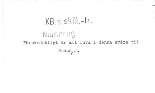 //// KB: s ski11.-tr. //// Namn Oj. //// Förskräckligt är att leva i denna svåra tid Braun/J. ////