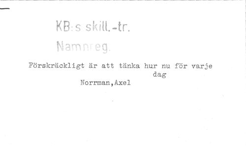 //// K13: s sött.-tr. //// nci //// Förskräckligt är att tänka hur nu för varje //// dag //// Norrman, Axel ////