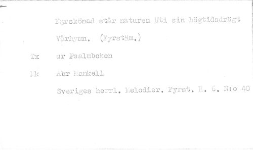 //// Förskönad står naturen Uti sin högtidsdrägt Värhytan. ('yrstäm.) //// ur Psalmboken //// Lk Yibr Lankoll //// Sveriges herrl. :Lelodier. Pyrs. 1., 6, N:o 40 ////