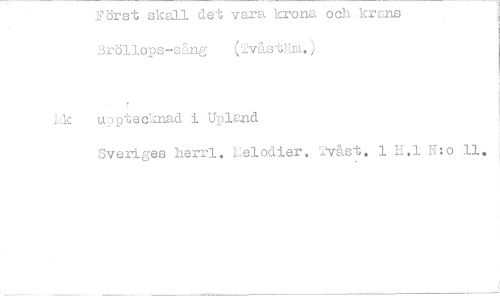 //// törst skall det vara krona och krcns 3röllops-sng (v2v1st;Am.) //// Lk wyptecknad i Upland //// Sveriges herrl. Lelodier. 2våst. 1 E.1 N:o 11. ////