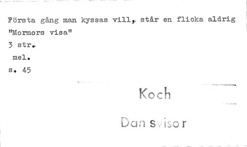 //// Första gång man kyssas vill står en flicka aldrig normors visa" //// 3 str« //// mel. se 45 //// K g" C h, //// S r ////
