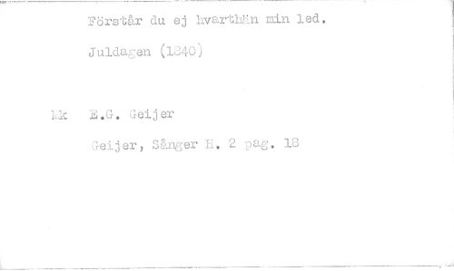 //// Förstår du ej hvarthän min led. Juldagen (1340) //// k :1.G. Geijer //// Geijer, Sånger H. 2 pag. 18 ////