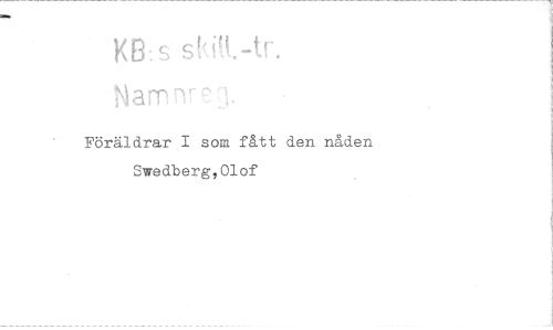 //// KE3:s s f t.-tr. //// Namn- //// Föräldrar I som fått den nåden Swedberg, Olof ////