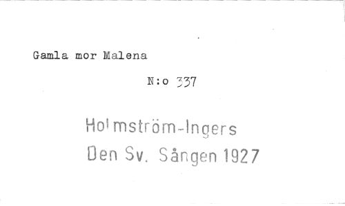 //// Gamla mor Malena //// N:o X37 //// hoamström-Ingers //// Den Sv. Sången 192 7 ////