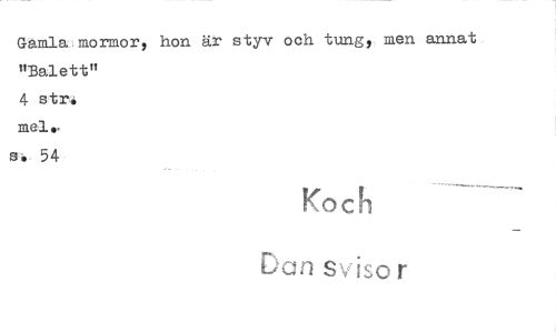 //// Gamla:mormor, hon är styv och tung, men annat "Balett" //// 4 str. //// 54 54 //// Kod" //// Dan sv !so r ////