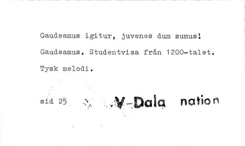 //// Gaudeamus igitur, juvenes dum Burnus! Gaudeamus. Studentvisa från 1200-talet. Tysk melodi. //// sid 25 NDala not; ////