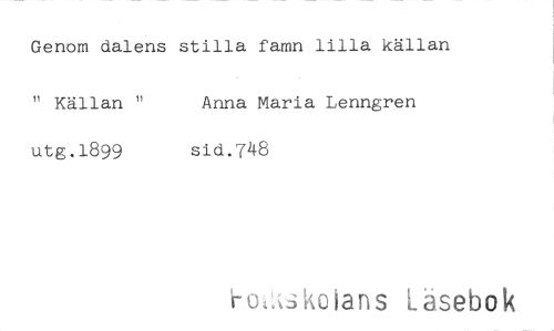 //// Genom dalens stilla famn lilla källan //// " Källan " Anna Maria Lenngren //// utg.1899 sid.7k8 //// 3kcians Läsebok ////