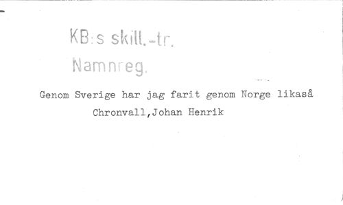 //// KB:s skilt -h //// Namnren //// Genom Sverige har jag farit genom Norge likaså Chronvall,Johan Henrik ////