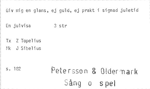 //// Giv mig en glans, ej guld, ej prakt i signad juletid En julvisa 3 str //// Tx Z Topelius //// lik J Sibelius //// s. 182 Petersson Oldermark //// Sång o s pel ////