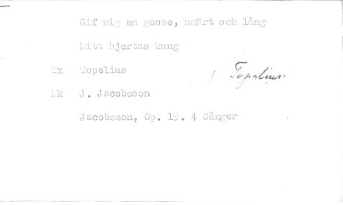 //// ri en gosse) rt och lång //// Lått hjertas kung //// 'Ap elius - //// k J Jacobsson //// Jacobsson, Op . 19. 4 Sånger ////