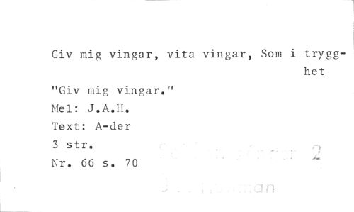 //// Giv mig vingar, vita vingar, Som i trygg- //// het //// "Giv mig vingar." //// Mel: J.A.H. //// Text: A-der //// 3 str. //// Nr. 66 s. 70 ////