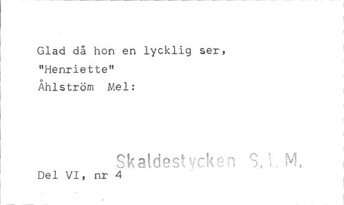 //// Glad då hon en lycklig ser, "Henrietta'" //// Åhlström Mel: //// Skaldest S,1 M, //// Del VI, nr 4 ////