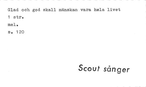//// Glad och god skall mänskan vara hela livet 1 str. //// mel. //// s. 120 //// Scout sånger ////