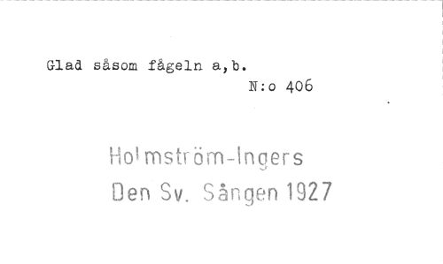 //// Glad såsom fågeln a, b. //// N:o 406 //// mströrn-ingers //// Den Sv. Sången 1927 ////