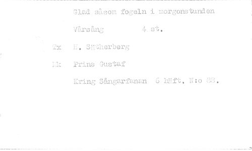 //// Glad såsom fogeln i morgonstunden VårsånG 4.s1. //// Slierberg //// 1.1z Prins Gustaf //// Kring Sång 6 hEft. U:o 33. ////