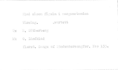 //// Caad såsom fågeln i morgonstunden //// Vårsång. ...yartett //// Tx Z. SUtherberg //// hrk 0. Lindblad //// fierst. Unge- af Studentersenfor. N:o 133, ////
