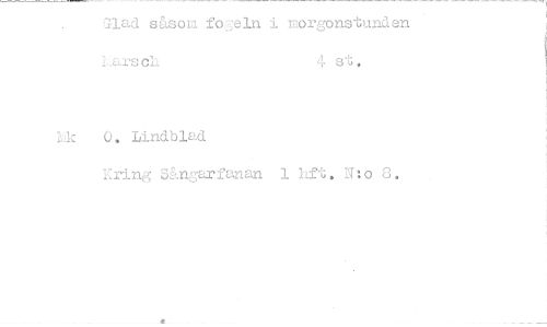 //// liad såsom fai=jeln i morgonstunden //// Larscil 4 st, //// Mc 0, Lindblad //// Kringgarfanan 1 lift. N:o 8. //// P ////