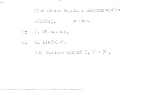 //// Gled såsos fogeln i morgonstunden Värsång. ,vertett. //// ix h. SUtherberg //// 1,1c 0. Lindblad. //// 100 Svenska sånger 1. N:o 30. ////