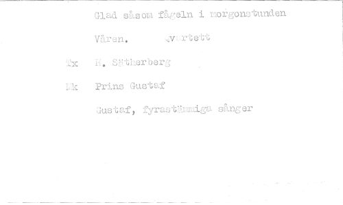 //// Glad såsom fågeln i morgonstunden Våren, vreit //// K. Stherberg //// 1:k Prins Gustaf //// justaf, fyrastlindga sånger ////