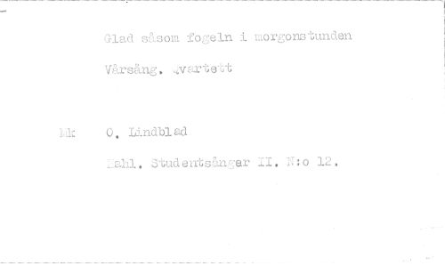 //// Glad säsom fogeln i morgonstunden Vårsång. slrartett //// kk 0. Lindblad //// Studentsångar II. N:o 12. ////