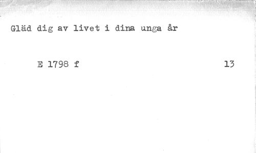 //// Gläd dig av livet i dina unga år //// E 1798 f 13 ////