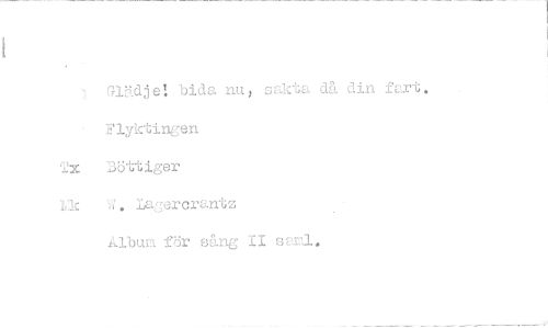 //// Glädje! bida nu, sakta då din fart. Flyktingen //// Tx Böttiger //// kk W. Lajercrantz //// Ålbur för säng II sami. ////