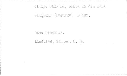 //// Glädje bida nu, sakta då din fart Glädjen. (Lazurka) B dur. //// Otto Lindblad. Lindblad, Sånger. H. 3. ////