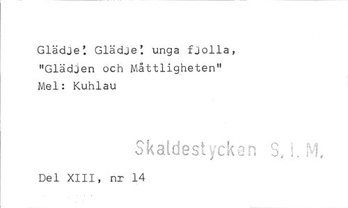//// Glädje: Glädje unga fjolla, "Glädjen och Måttligheten" Mel: Kuhlau //// Skatdestychn S, L M, //// Del XIII, nr 14 ////