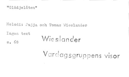 //// "Glädjelåten" //// Melodi: Jujja och Tomas Wieslander //// Ingen text \f'sl i c stander //// s. 68 //// Vardagsgruppens visor ////