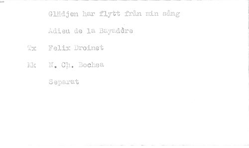 //// Glädjen har flytt från min sång Adieu de la Bayadåre //// (.23c Felix Droinet //// Lk N, Ch, Bochsa //// Separat ////