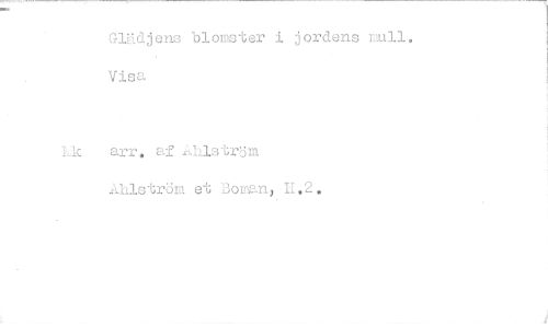 //// Glädjens blomster i jordens mull. Visa //// Lic arr, af Åhlström //// Ahlströra et Boman, 11,2, //// DEM ////