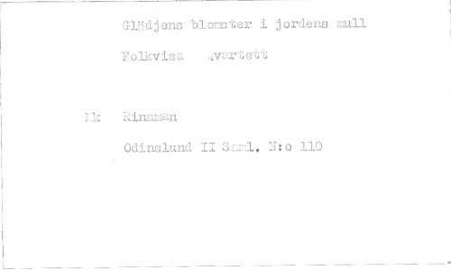 //// Glädjens blomster i jordens mull Folkvisa ..,:ivartett //// Lk Rinnman //// Odinslund II Saml. Nto 110 ////