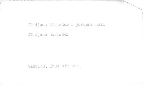 //// Glädjens blomster i jordens mull Glädjens blomster //// Gisslow. Inne och ute. ////
