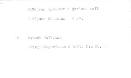 //// Glädjens blomster i jordens mull G-lädjens blomster 4 st, //// IJ Svensk folkvisa //// ICring Sångarfanan 6 häft. N: o 89 • ////