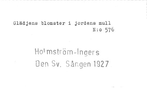 //// Glädjens blomster i jordens mull //// N:o 576 //// Ho' mström-Ingers //// Den Sv. Sången 1927 ////