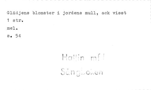 //// Glädjens blomster i jordens mull, ack visst 1 str. //// mel. //// s. 54 ////