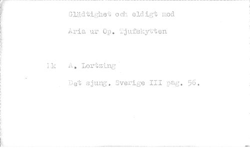 //// Gladtighet och eldigt mod Aria ur OD. Tjufskytten //// A, Lortzing //// Det sjung. Sverige III pag. 56. ////