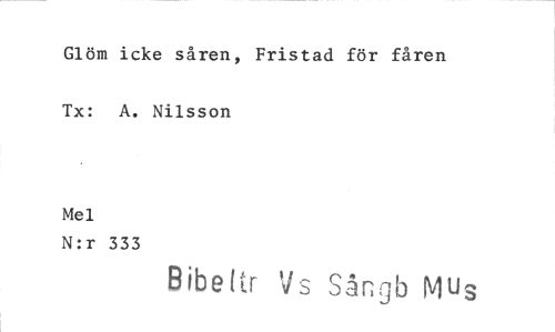 //// Glöm icke såren, Fristad för fåren Tx: A. Nilsson //// Mel //// N:r 333 //// Bibeltr Vs Sångb Mus ////
