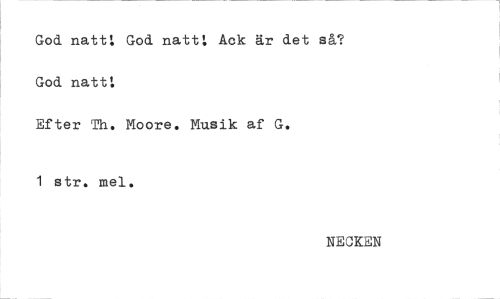 //// God natt: God natt: Ack är det så? God natt: //// Efter Th. Moore. Musik af G. //// 1 str. mel. //// NECKEN ////