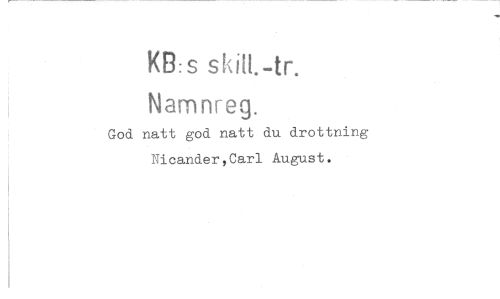 //// KB:s skitt.-tr. //// Namnreg. //// God natt god natt du drottning //// Nicander,Carl August. ////